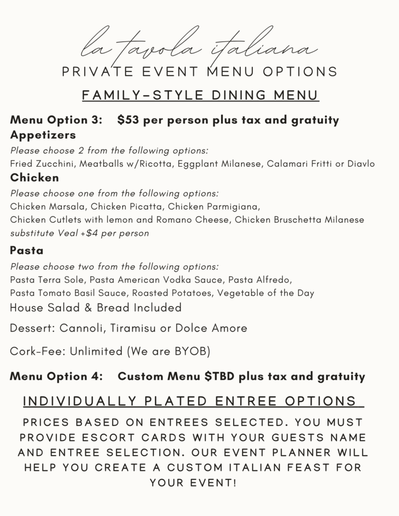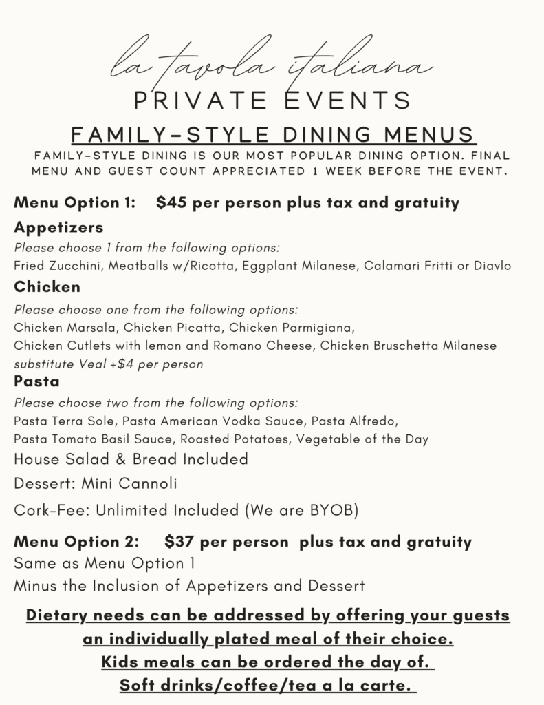Private Events at La Tavola Italiana